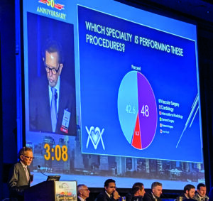 First, which specialty is responsible for most of vascular surgery in the United States? For the last two years I have been involved in developing and overseeing a major insurance carrier’s 100% outpatient Medicare Advantage prior authorization (PA) program involving 10 endovascular codes dealing with iliac, femoropopliteal and tibial arteries (Codes 37220–372230), and recently all vascular surgery. Medicare Advantage programs are now insuring more than 50% of all Medicare participants, so my experience has provided me a good overview of who is doing what and why. Cardiologists accounted for 48% of the requested PAs, with 42.6% from vascular surgeons, 8.3% from interventional radiologists, and 1% from general surgeons, thoracic surgeons, or nephrologists. There was a geographic variation with vascular surgeons, cardiologists, and interventional radiologists requesting, for example, 40%, 53%, and 6% PAs in Florida; 42.6%, 28.7%, and 28.7% in Texas; and 63%, 26%, and 11% in New York State, respectively. Irrespective of the variation, these data clearly show that, overall, vascular surgeons are probably doing less than half of the vascular procedures in the U.S. Now that the Centers for Medicare & Medicaid Services (CMS) has approved carotid stenting for asymptomatic patients, it is likely that cardiologists will take away even more procedures.
