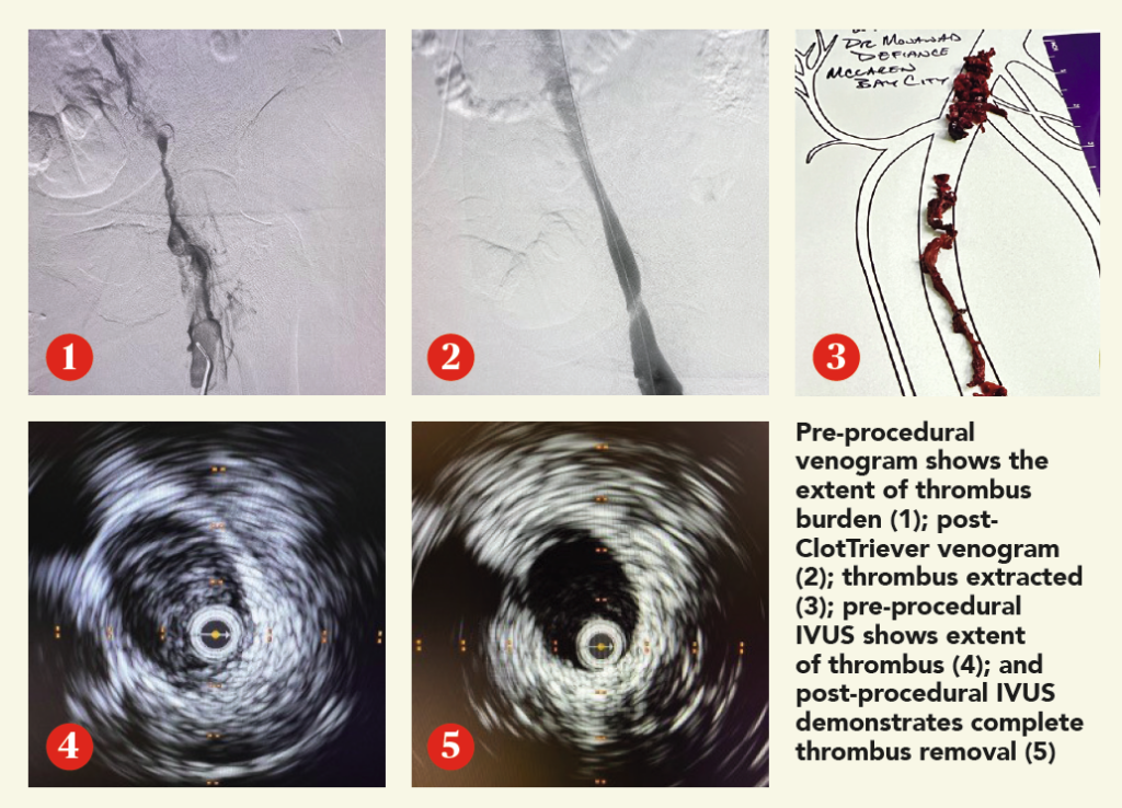 Several years ago, when Nicolas Mouawad, MD, division chief of vascular surgery at McLaren Health in Bay City, Michigan, was confronted with an emergency case of deep vein thrombosis (DVT) in which the patient presented with phlegmasia, he faced a dilemma. With the traditional lytic intervention off the table due to the urgent need for an immediate response, Mouawad turned to a new device he hadn’t used before. For the first time, the ClotTriever® System provided Mouawad a DVT intervention procedure with a lytic-free approach in a single-session treatment with wall-to-wall thrombus removal, providing the patient with immediate symptom relief.1